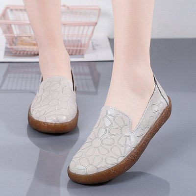 รองเท้าหนังแท้หัวมนเรียบง่าย