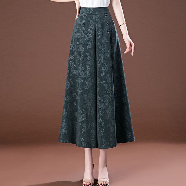 กางเกงขาบานผ้าทิ้งตัวได้ดี เนื้อผ้าไหมเย็นพิมพ์ลาย