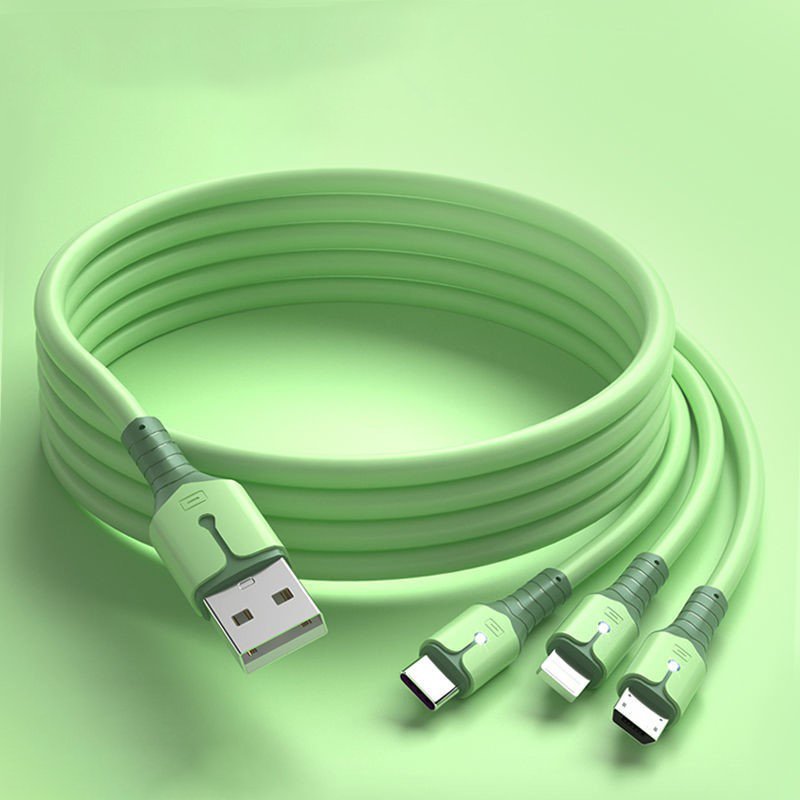 สายชาร์จซิลิโคนเรืองแสงแบบ 3 in 1 ชาร์จไฟเร็ว