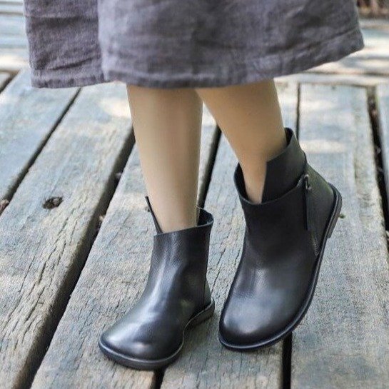 รองเท้าบูทสตรี แบบมีซิปแฟชั่น ส้นแบน หัวกลม